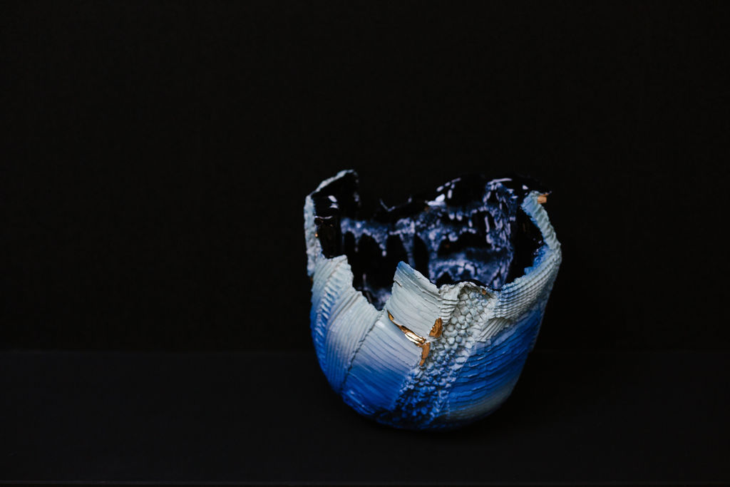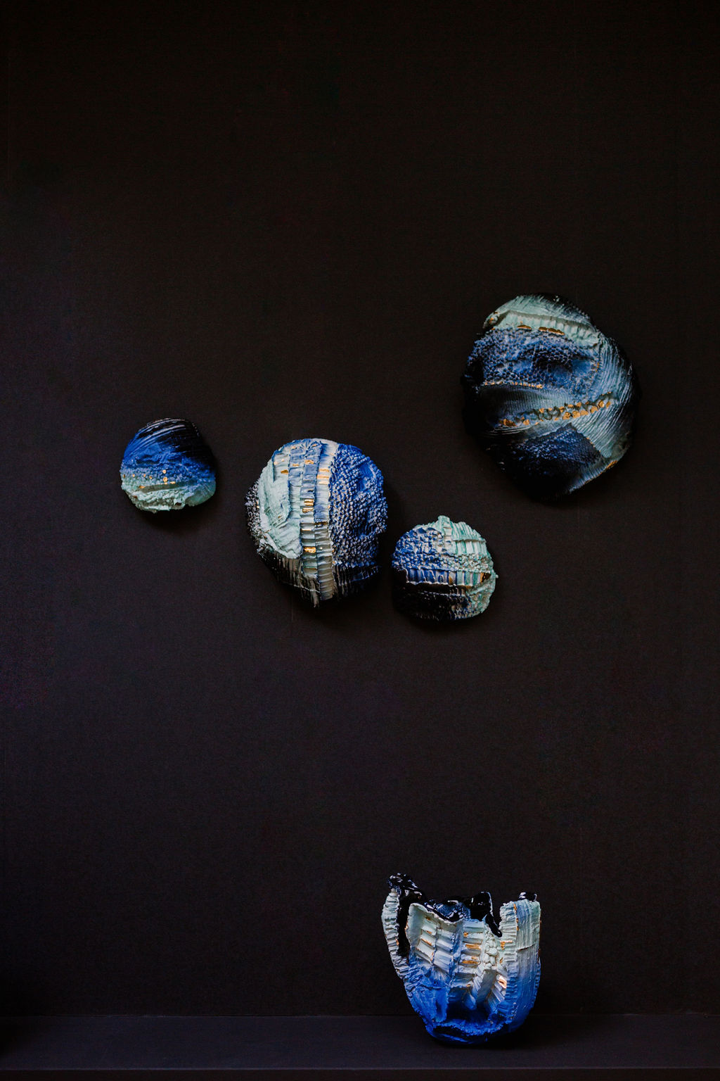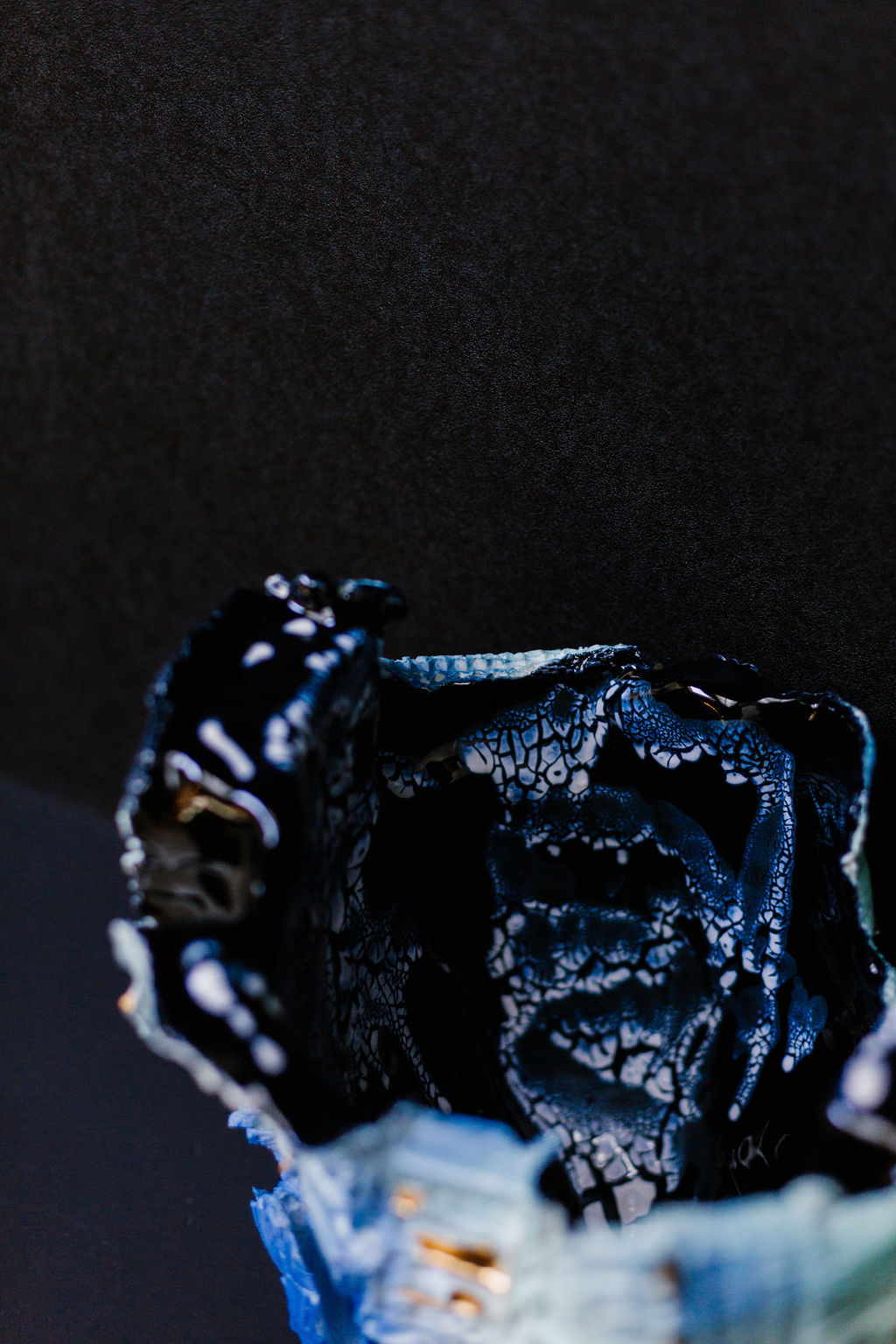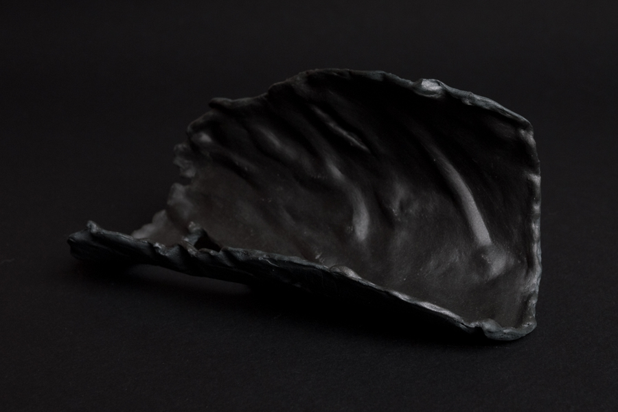 Le projet est tout d’abord né de l’envie de travailler la couleur noire avec la porcelaine. J’ai donc élaboré mes nuances de noir par mélange de la porcelaine et d’oxydes colorants.