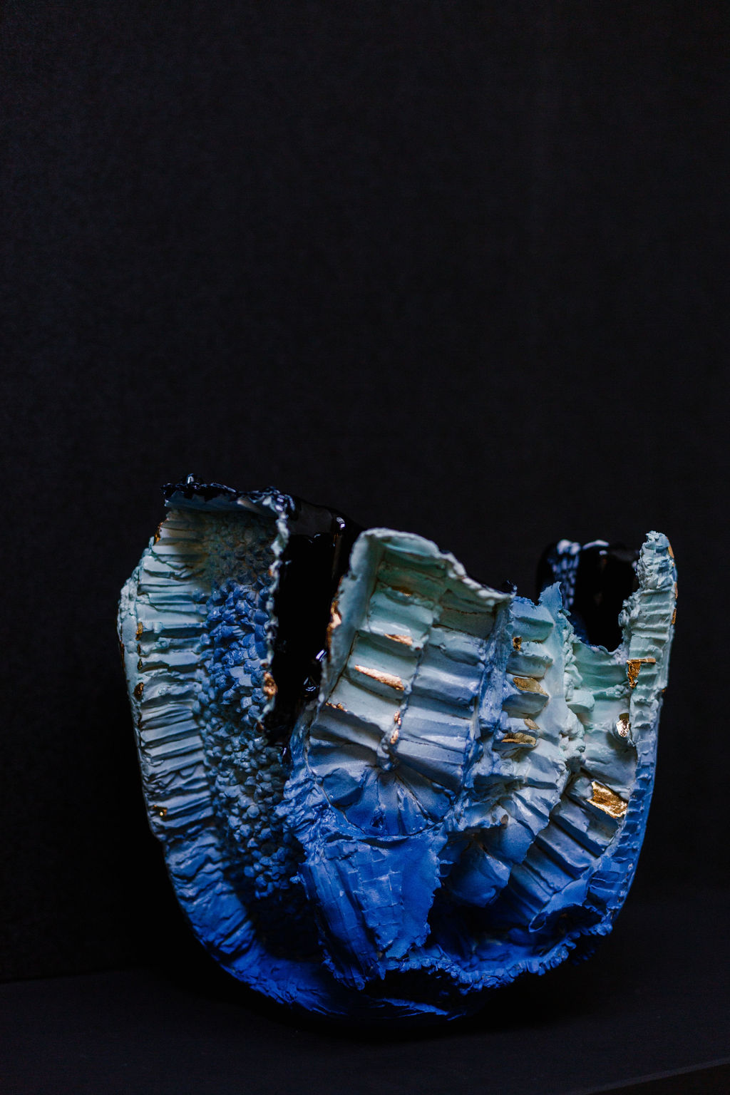 Ces créations s’inscrivent dans une démarche d’observation et de résonance avec le monde naturel. L’eau, élément matriciel, berceau de la vie et miroir de nos émotions, nourrit profondément mon travail. J’interroge notre rapport au monde aquatique, sa temporalité mouvante et l’apaisement que nous procure sa contemplation. Mes sculptures cherchent à capturer ces instants éphémères où le tangible et l’intangible se rencontrent, où la matière se souvient des flux qui l’ont façonnée.