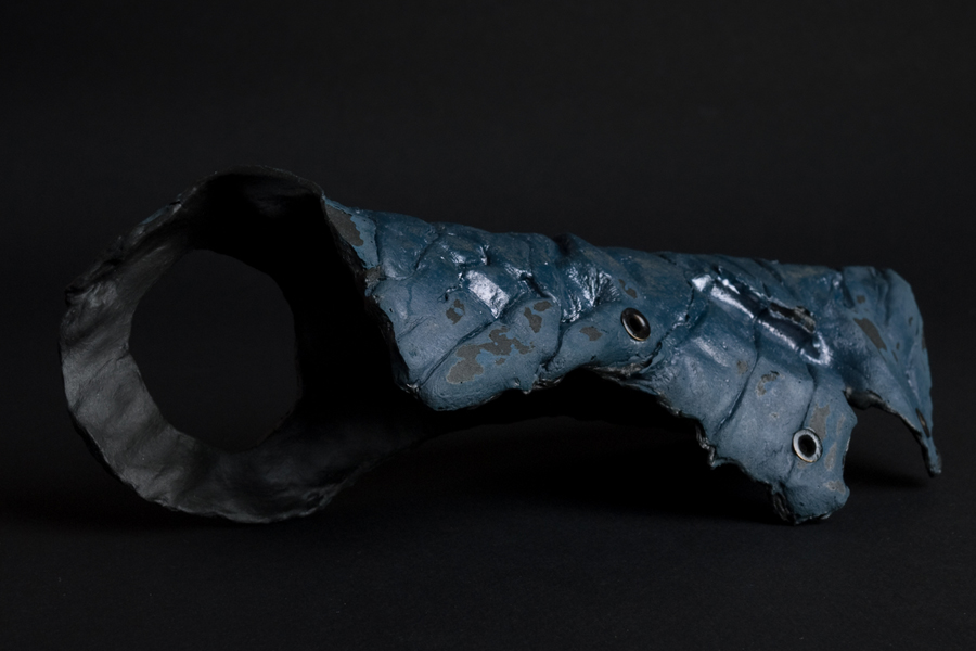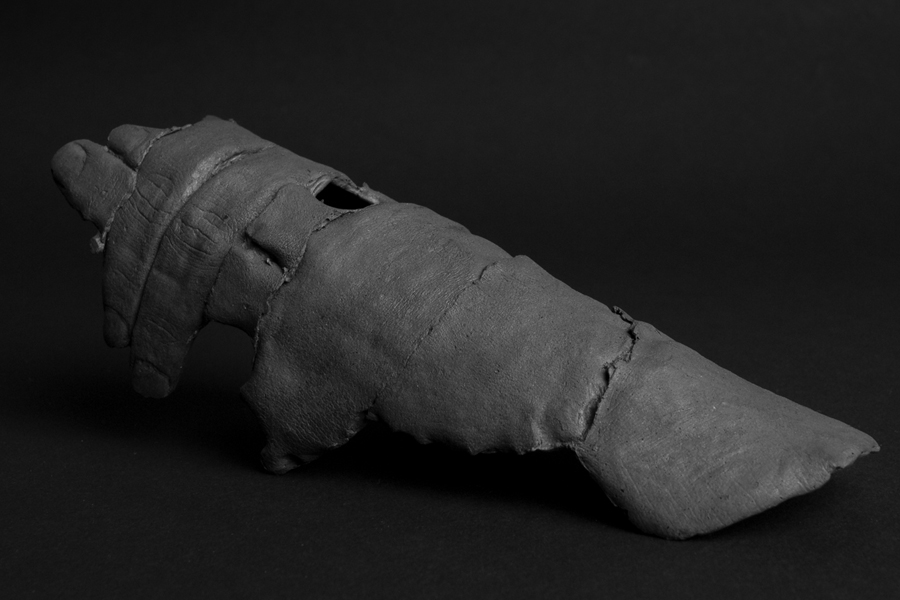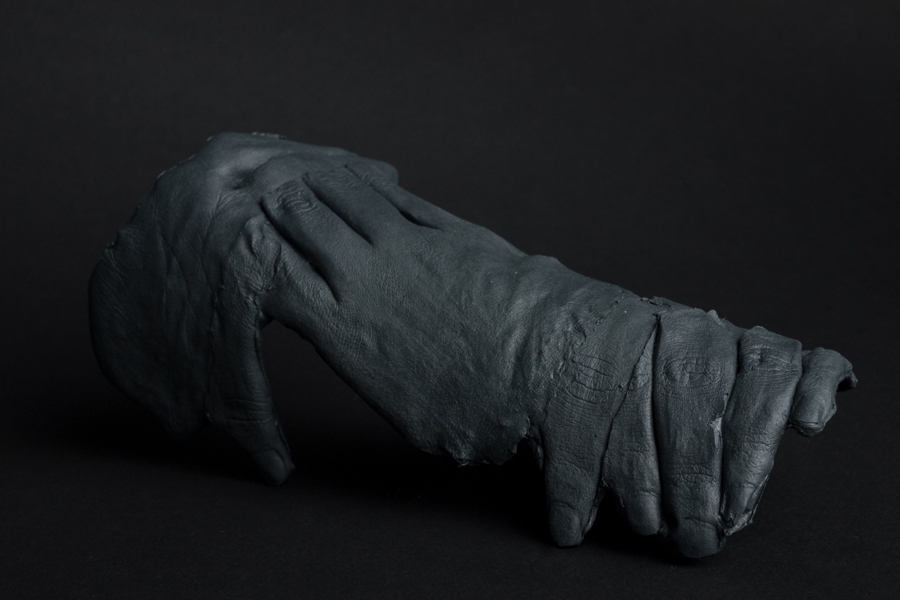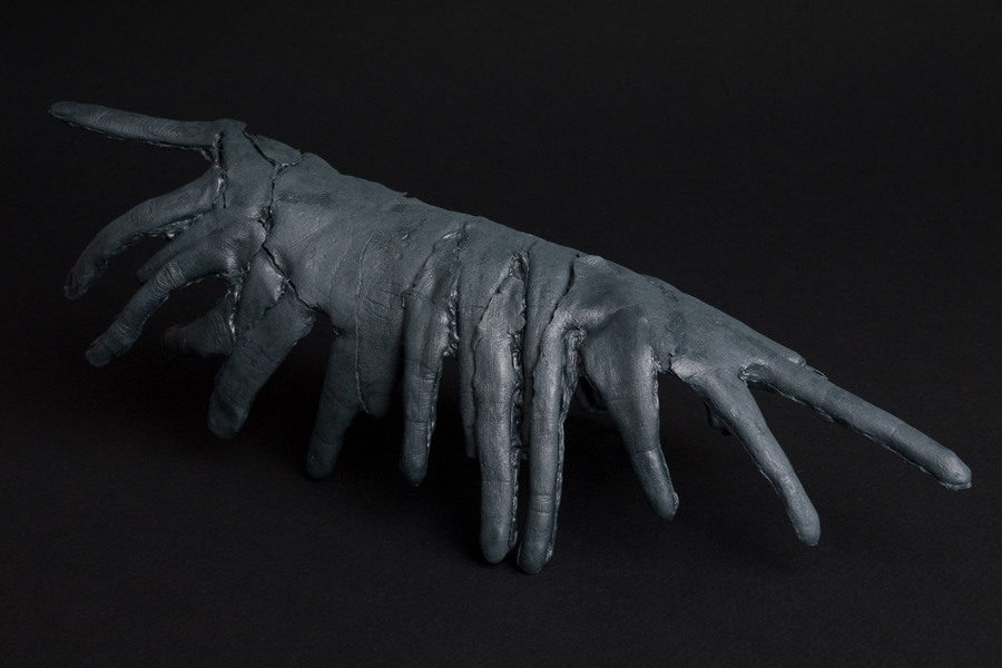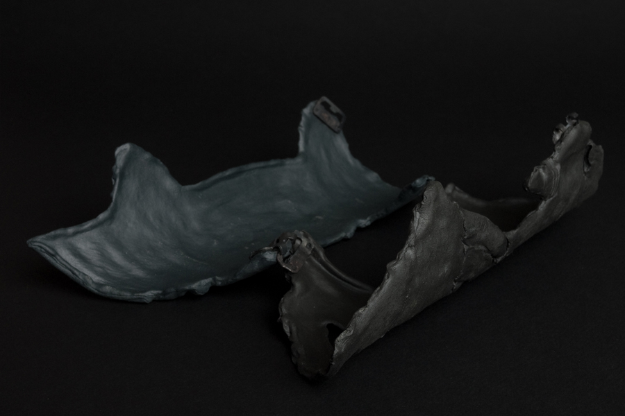 Les textures imprimées dans les pièces sont celles de mes mains. Cela donne aux pièces leur aspect de ‘seconde peau’, mais c’est aussi le geste de la guérison par l’imposition des mains que j’ai voulu ainsi révéler.