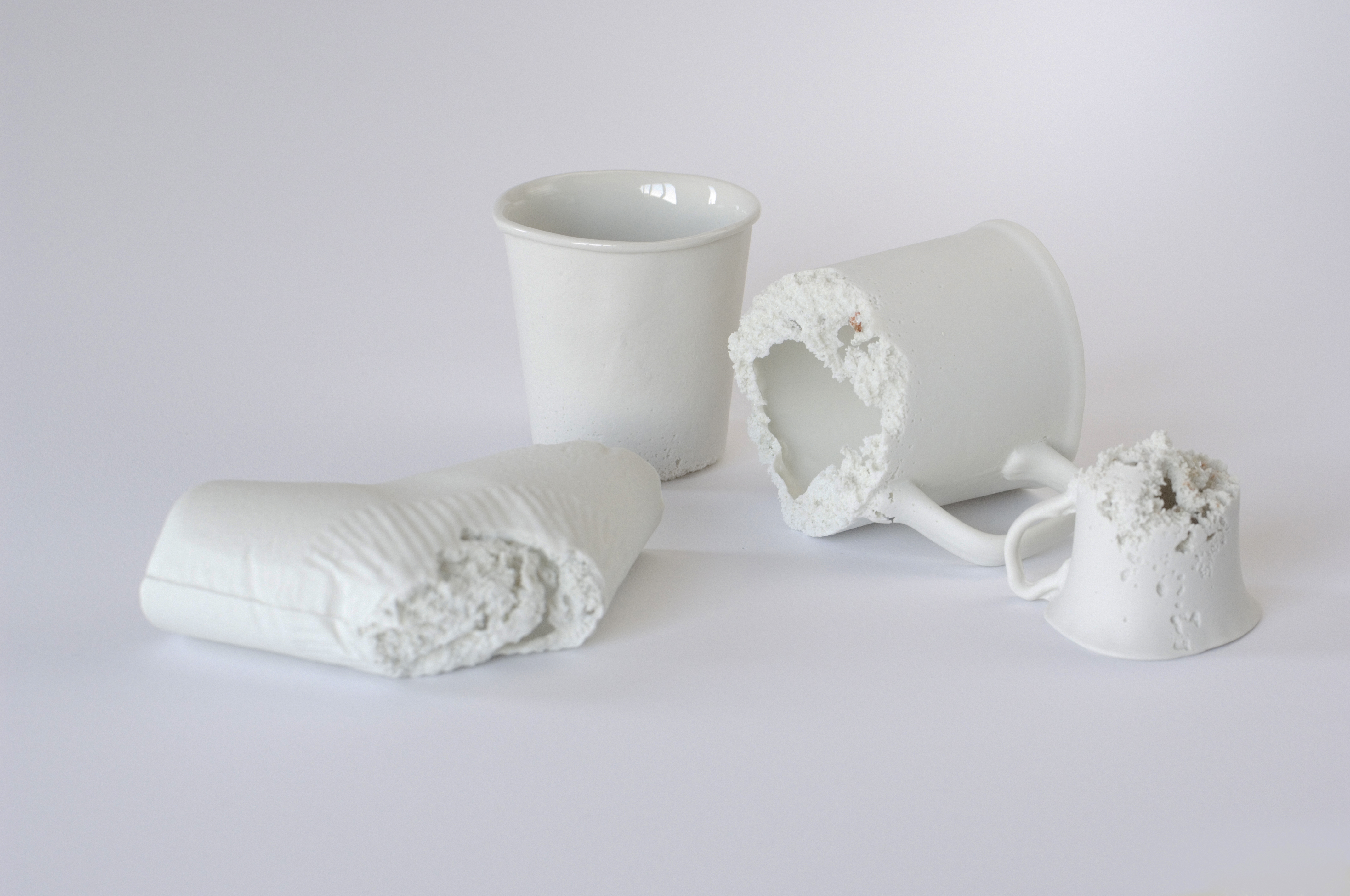 Ce projet s’inscrit dans la continuité d’un travail de texture dans la porcelaine, texture obtenue grâce au mélange de l’argile et d’une autre matière.